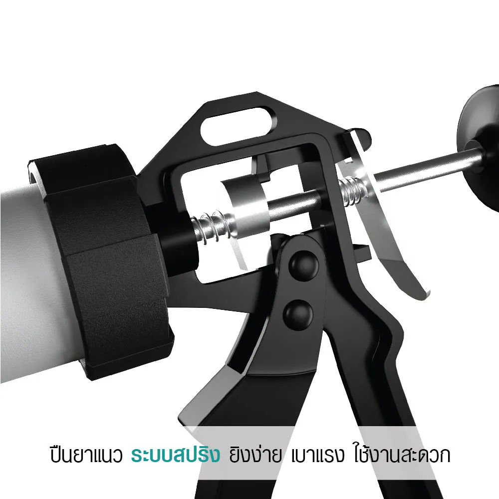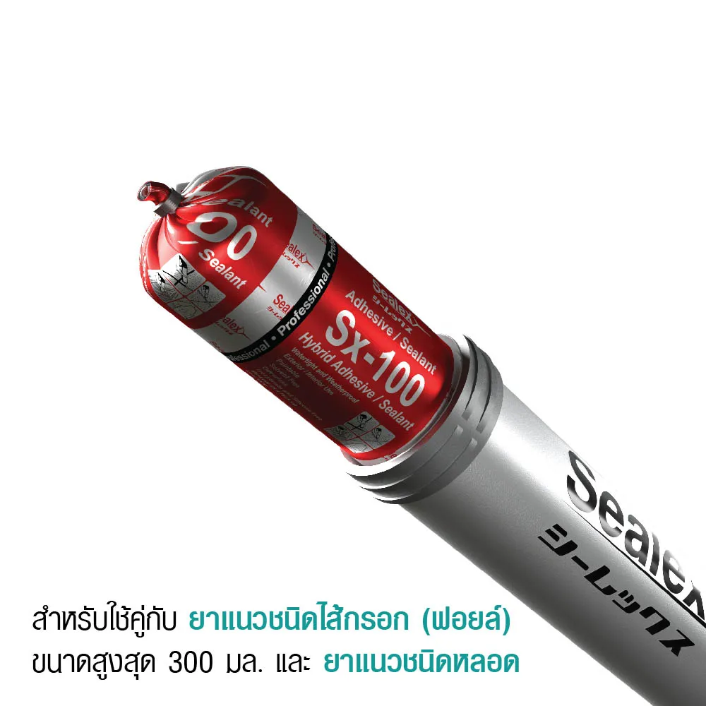 ปืนยิงยาแนวซอสเซจ ผลิตจากวัสดุอลูมิเนียมคุณภาพสูง แข็งแรง ทนต่อการบีบอัดและแรงกระแทกได้เป็นอย่างดี ใช้งานสำหรับยิงยาแนวแบบฟอยล์ มีให้เลือกอยู่ 2 ขนาด แบบสั้น 380 ml. และแบบยาว 600 ml.